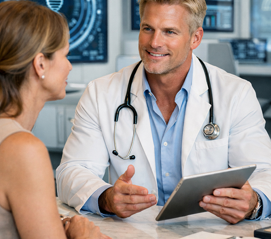 We begin with a thorough review of your medical history, current health status, lifestyle, and goals to create a complete picture of your well-being.
